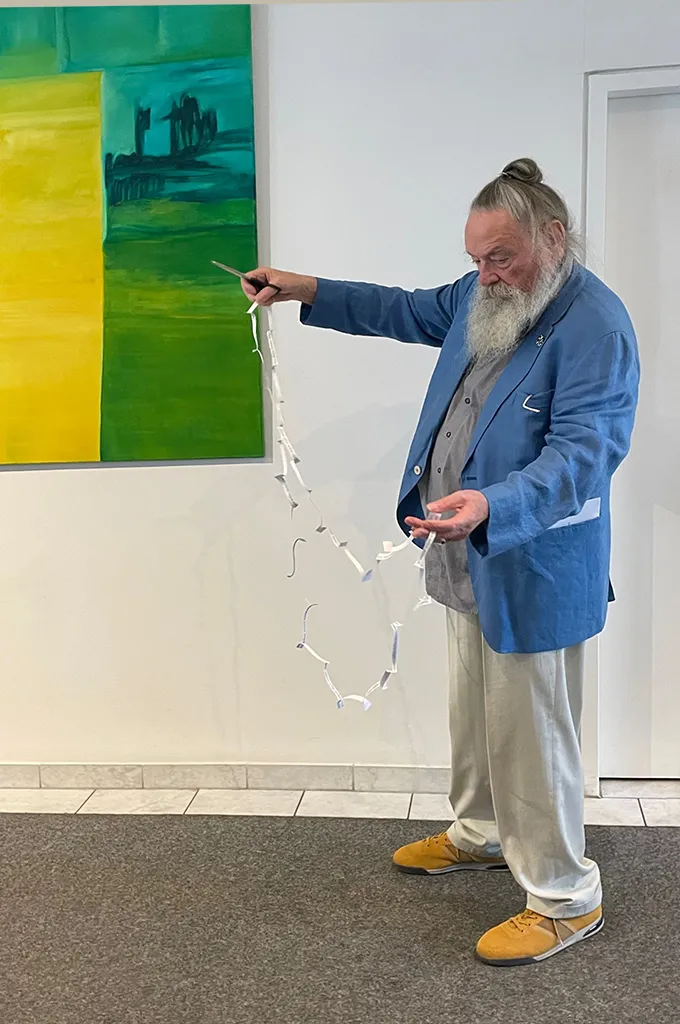 Begrüßung durch Kuratorin Angelika Stoesser und persönlicher Einführung von Nicolaus Werner als Reiseleitung zu seinen Bildern.